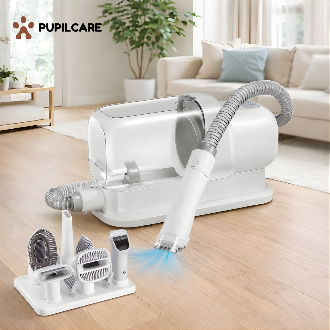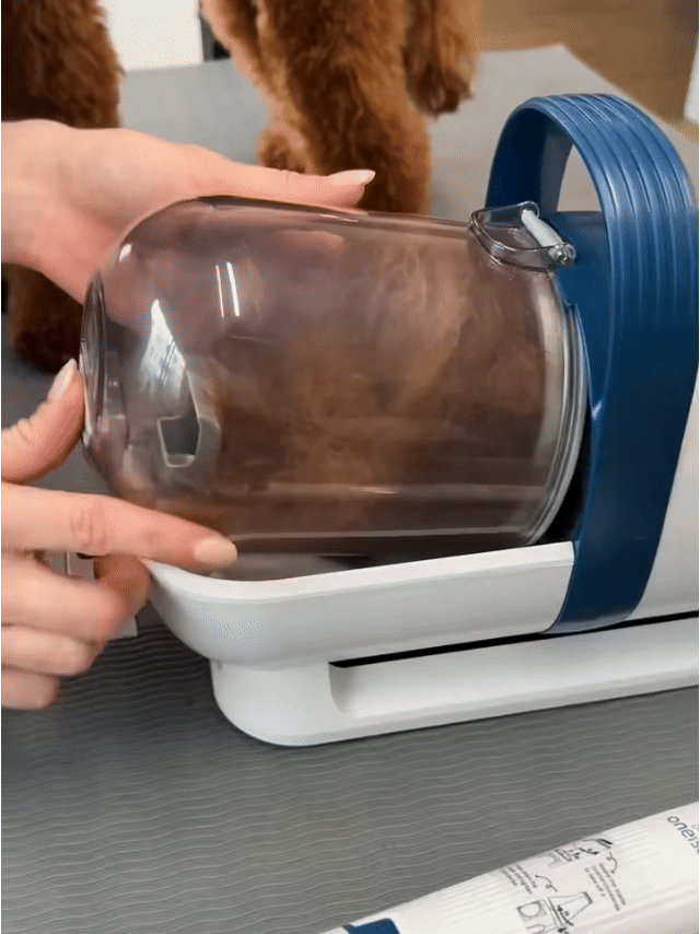 Podczas strzyżenia lub czesania sierść jest zasysana od razu do pojemnika. Dzięki temu włosy nie latają po domu i nie trzeba sprzątać po każdym użyciu.